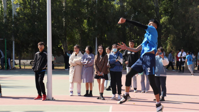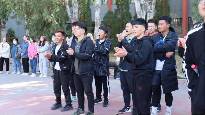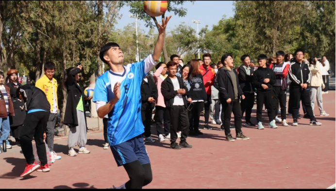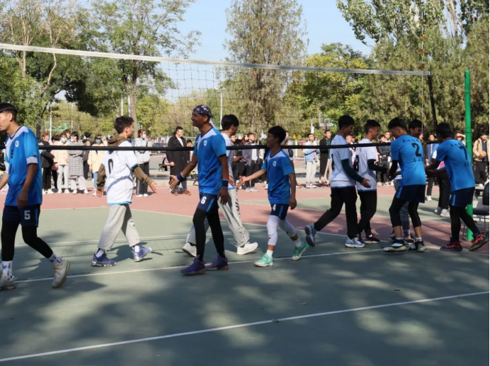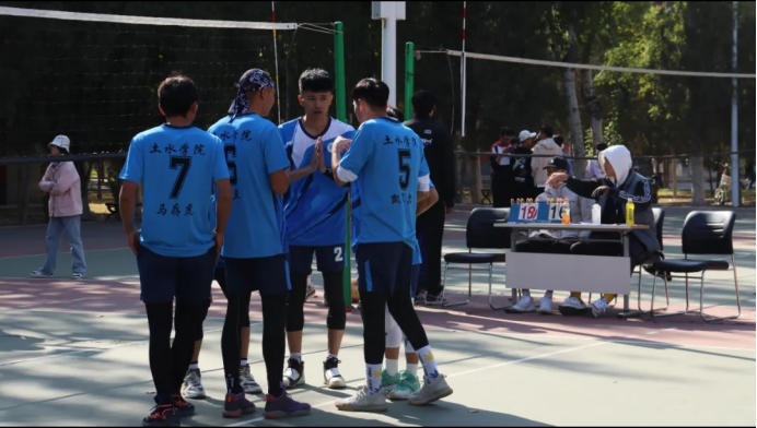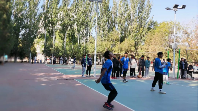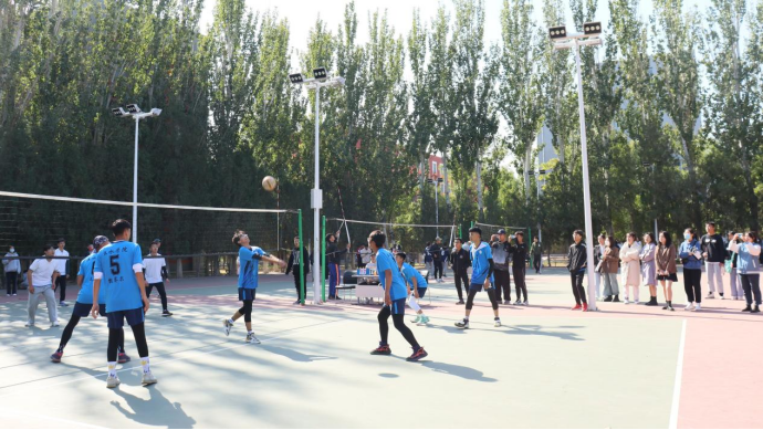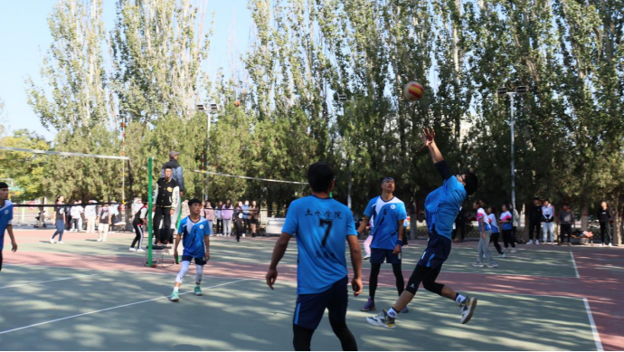 与人文学院进行了激烈的男排比赛。