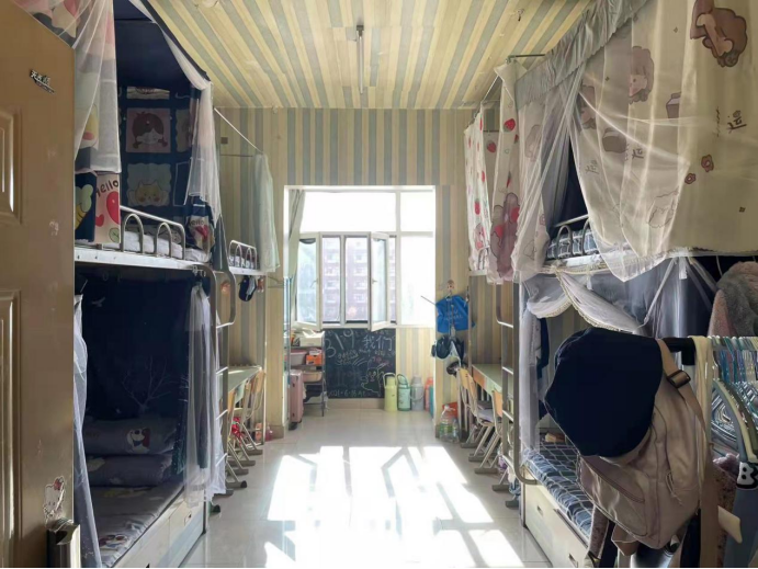 本次宿舍风采大赛获得三等奖的是13号楼302宿舍。牙刷斜倚在牙杯上,整齐地摆放在朦胧的镜子前,显得有些安详,被子上搭着温暖的枕头,六张小床紧紧相依,六个可爱的女孩朝夕相处。这里是忙碌了一天后可以见面的地方,这里是疲惫后可以安心睡觉的宫殿,这里是302宿舍充满浪漫的回忆。vlog中的她们一起吃饭,一起睡觉,一起哈哈大笑,一起唱歌,一起学习,一起快乐生活。没有烦恼,喜欢八卦,干饭积极,热爱生活!