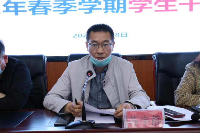 最后,苏宇静做出讲话。他首先传达了学校疫情防控工作会议精神并提出具体要求,要发挥学生干部、入党积极分子、党员的积极作用,将疫情防控作为最紧要的工作。随后强调了近期重点工作,提醒大家增强安全意识,鼓励各班级开展特色学风活动,党员和干部带头督促,带动学院学风的提升。