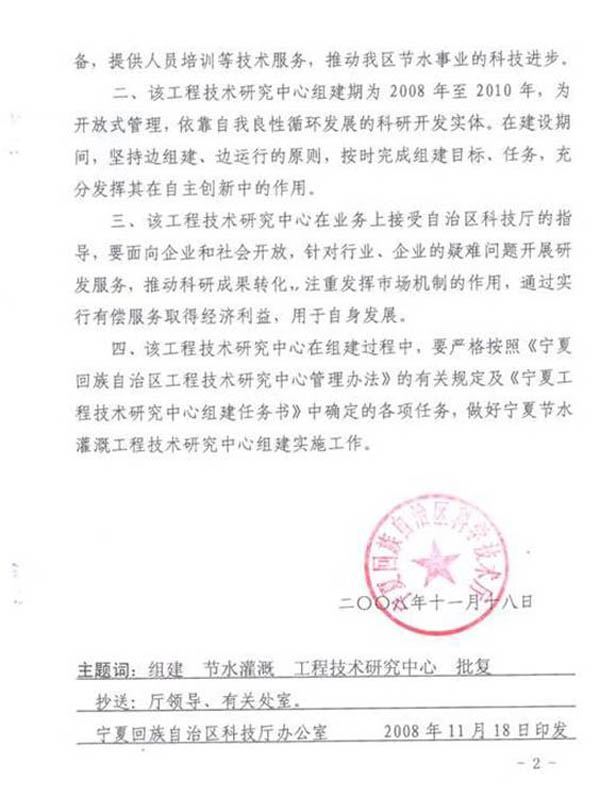 该公司于2004�10月在宁夏银川市西夏区同心南街的宁夏国家级高新技术开发区西部光彩产业基地建立,后转入宁夏大学金凤科技园,总投�1000万元,建筑面�12000m 2。目前公司以研制、开发、生产、销售各式补灌设备等为主要业务。目前,建立了一条年�1万台(套)节水设备的生产线,取得了生产成功,年产量已达到3000套,产值已超过580万元,具备了年产1万台(套)的能力。具备良好的工程化基础�