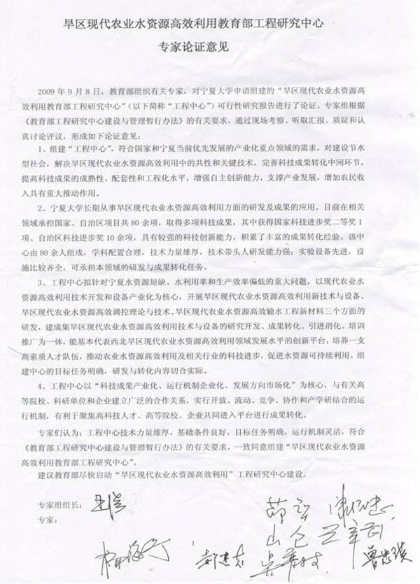 力争�2年左右的时间,立足宁夏,面向西北,瞄准制约农业、农村经济与社会发展的重大关键节水问题,以宁夏大学�211”工程建设学�--节水灌溉与水资源调控学科群以及水利水电工程博士点为纽带,联合校内水利、材料、农业、机械、电气、信息等优势学科和校外节水灌溉方面的材料、农业机械、设备开发等企业,以学科交叉、渗透融合为突破口,以水—土—植物有机结合、工程措施和农业生物措施相统一为特色,以现代农业水资源高效利用工程技术开发和设备产业化为核心,两个国家支撑计划项目为抓手,形成现代农业水资源高效利用新技术、新方法、新材料、新产品、新设备的研究开发基地,新产品的中试和开发基地,高级工程技术人才和新型特色优势农业产业的培育基地,工程技术示范与培训基地,国际合作与交流基地� 建成集研究开发、成果转化、引进消化和培训推广为一体的、具有干旱地区鲜明特色和优势的、能基本代表西北旱区现代农业水资源高效利用领域发展水平的工程研究中心�争取获得省部级科技进步一、二等奖1项,申请国家发明专利和实用新型专�5项,在本领域重要刊物上发表有影响的学术论�15篇以上。在宁夏中部干旱带压砂地持续利用、设施园艺、宁东能源基地、宁夏北干渠、宁南水资源高效利用成果转化和产品开发方面,争取开发精准灌溉方面的产品2-3个,在全区推广�