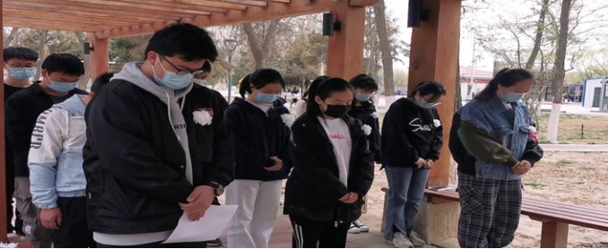 水利本科党支部在文萃校区长廊凉亭处开展“网上祭英烈,云上寄哀思”主题党日活动。支部全体党员参加,活动由党支部书记梁冀宁主持。