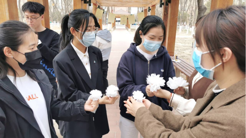 全体党员在支部书记梁冀宁的现场教学下,利用现有材料亲手制作清明祭祀小白花,全体党员将小白花佩戴于左胸前,在默哀中以示哀思。