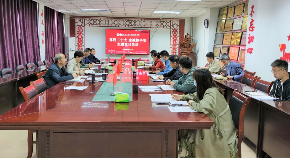 为进一步筑牢校园安全防线,喜迎党的二十大胜利召开,2022年5月11日上午,六合彩网上投注app党委在知行楼415会议室开展“喜迎二十大 忠诚保平安”主题党日(扩大)活动。学院党委委员和各党支部书记参加活动,活动由学院党委书记陈晓敏主持。