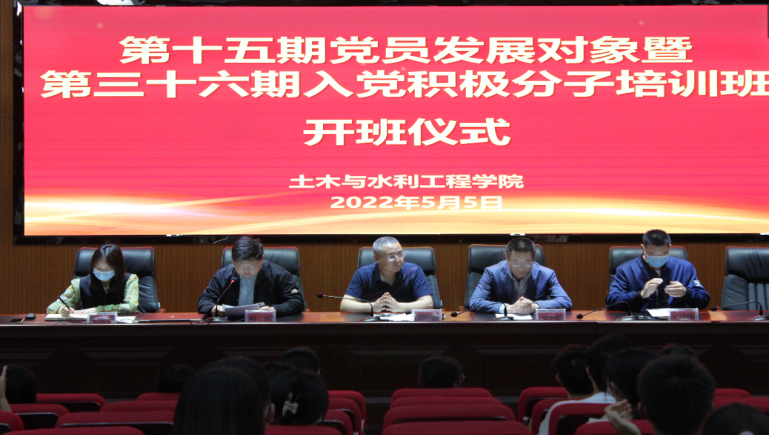 在知行楼三阶召开第十五期发展对象暨第三十六期积极分子培训班开班仪式,学院党委书记陈晓敏,党委副书记尹娟、苏宇静,各党支部书记以及第十五期发展对象和2022年春季学期积极分子全体学员参加开班仪式,本次会议由何涛老师主持。