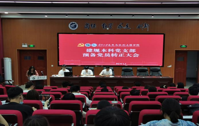 建规本科党支部于知行楼三阶教室召开了2022年度春季预备党员转正支部大会。支部全体师生党员参加了会议,支部副书记贾浩主持了此次会议。