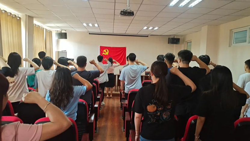 大会首先对每名拟接收党员资格进行了说明,随后每一名发展对象对自己的入党动机及入党意愿等进行汇报发言,第一入党联系人和第二入党联系人对他们的情况及是否推荐入党进行了表态。最后由正式党员进行无记名表决。经无记名投票,4名发展对象全票通过,随后在王娜老师的带领下全体党员面对党旗宣誓。本次接受的预备党员有翟鸿漾、姚如龙、马彦芳和段绪旭四名同志。
