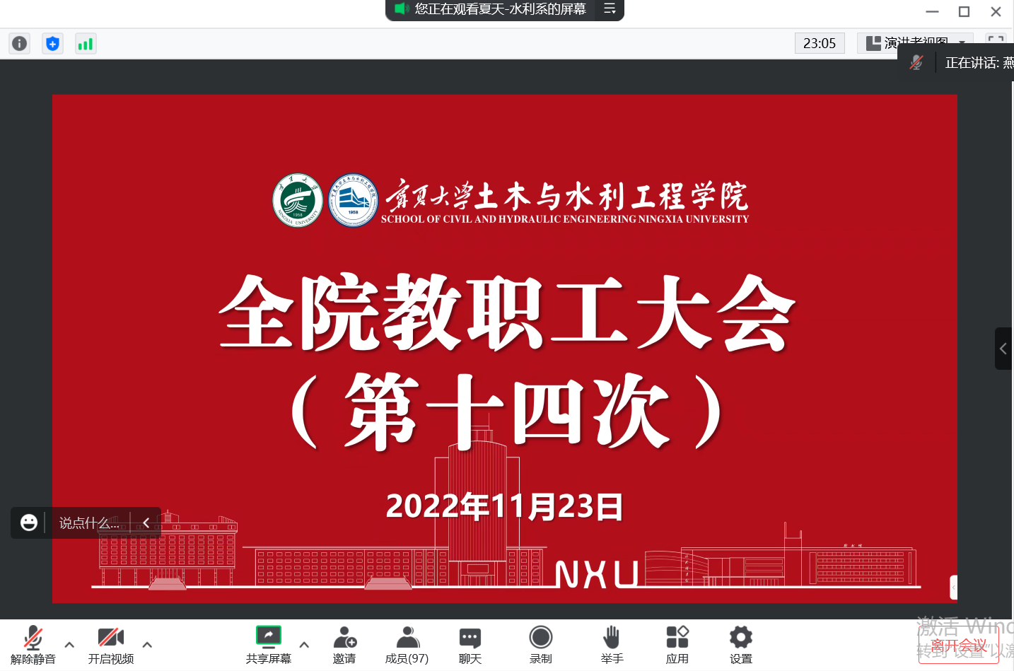 会上,毛明杰院长通报了学院经费使用与报账情况;李王成副院长介绍了关于六合彩网上投注app承办“2022丝绸之路智慧水利与低碳能源国际产学研用合作研讨会”的相关事宜,安排部署了期末考试有关工作;刘海峰副院长通报了近期科研工作以及研究生相关工作安排;苏宇静副书记传达了《宁夏大学校园疫情防控通告》9号文件精神;徐利岗副院长组织全院教职工投票选举出六合彩网上投注app“工会积极分子和优秀工会干部”。