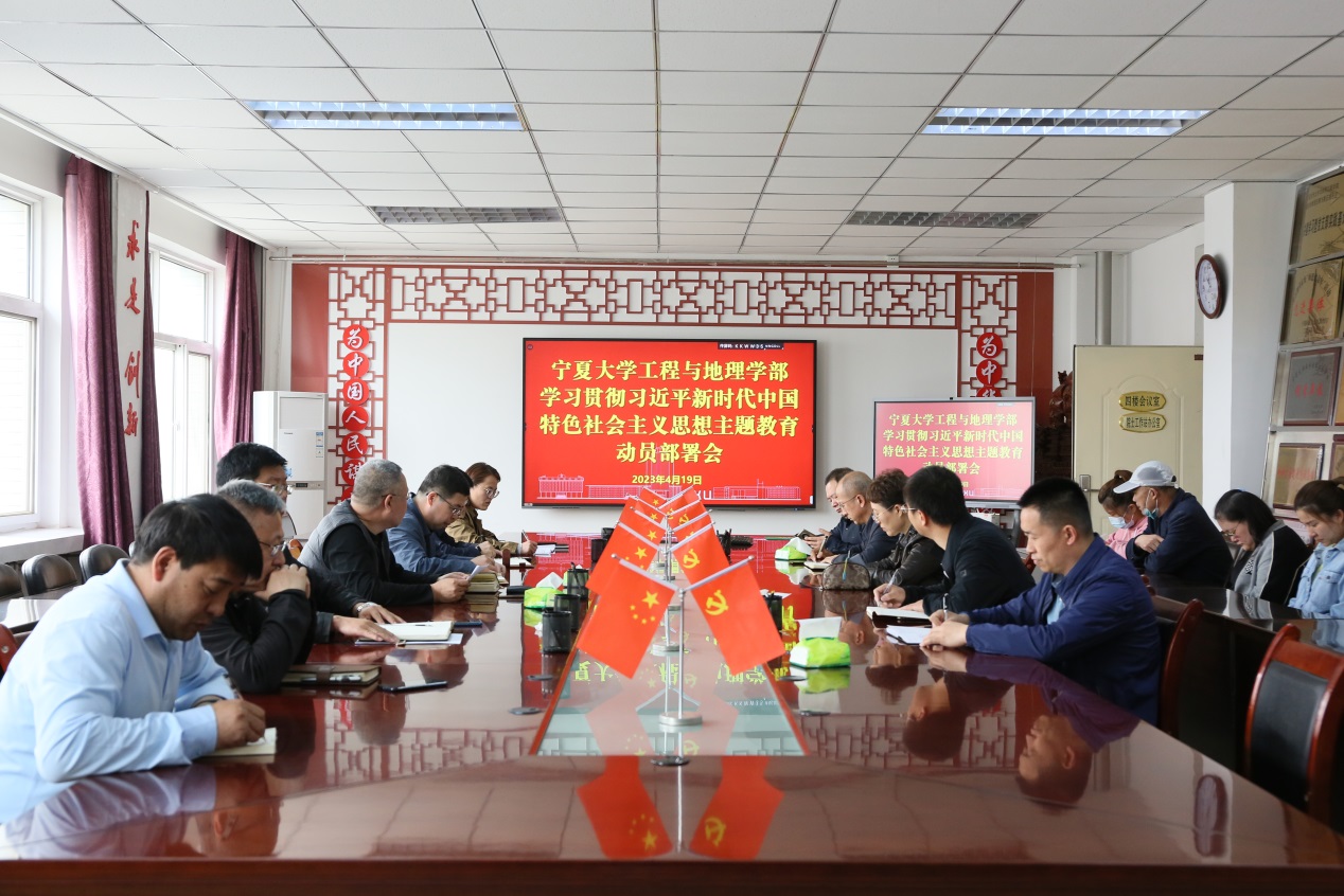 4月19日,工程与地理学部在知行楼415会议室召开学习贯彻习近平新时代中国特色社会主义思想主题教育动员部署会议,传达学习习近平总书记在中央主题教育工作会议上的重要讲话精神,贯彻落实宁夏大学党委重要部署,对开展主题教育进行动员安排。学部副处级以上领导干部以及所有行政人员参加会议,会议由学部党委书记陈晓敏主持。