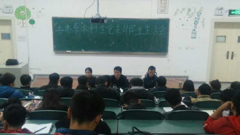 为响应党的十九大坚持全面从严治党的精神,顺应学院党委党员发展“五推”流程,提高党员发展质量�11�22日晚,土木与水利工程学院土木本科生党支部民主生活会在三阶顺利召开。本次民主生活会分为两项内容:讨论推优候选人、学习新党章,党支部全体成员和本期拟发展对象成员参加了此次活动,活动由支部副书记王瑞主持�