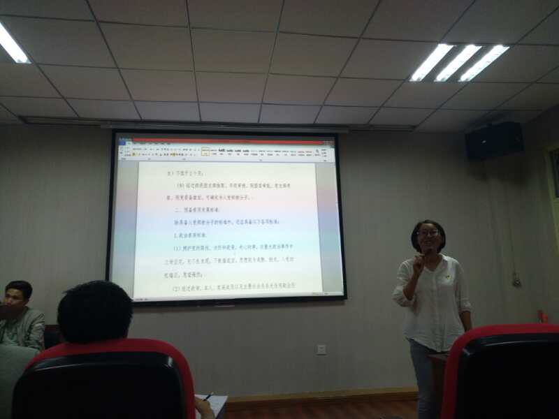 陶雪梅老师开题向入党积极分子提出问题:入党是不是人生规划?随后从6个方面项大家进行了讲解:入党动机,入党要求,入党程序,入党申请书的撰写,学校党组织和学院党组织的构成,入党需要了解的相关文件。会上,来自不同年级的积极分子和大家交流了自己的入党动机,肖开提同学结合自己的亲身经历从民族团结的角度阐述自己的入党动机,获得大家热烈的掌声。