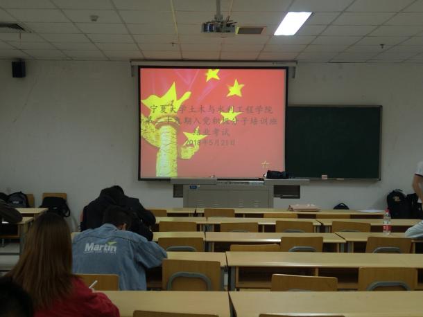 2018年5月21日晚,六合彩网上投注app第二十九期入党积极分子党课结业考试在文萃校区二教106教室举行。共计60名入党积极分子参加此次考试。监考成员由部分学生党员担任。