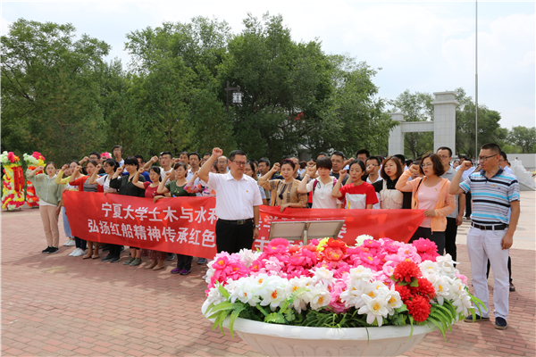 党委组织各教工支部党员及学生支部党员代表于2018年7月7日开展主题为“弘扬红船精神传承红色基因”主题党日活动,赴盐池革命纪念馆参观学习,缅怀革命先辈的丰功伟绩,追忆红色历史,接受革命传统教育。