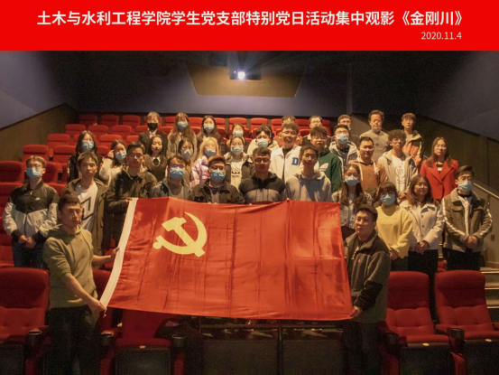 2020年11月4日下午,建规和土木本科党支部联合组织于西夏万达观看了电影《金刚川》,两个党支部的全体党员参加。
