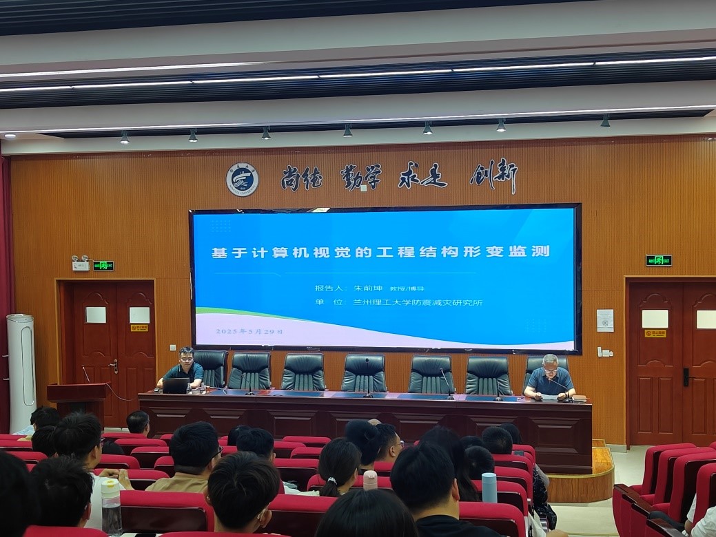 2025�5�29日下午,兰州理工大学朱前坤教授应邀为我院师生做题为“基于计算机视觉的工程结构变形监测”的学术讲座。学院师�100余人聆听了讲座,讲座由学院院长毛明杰教授主持�